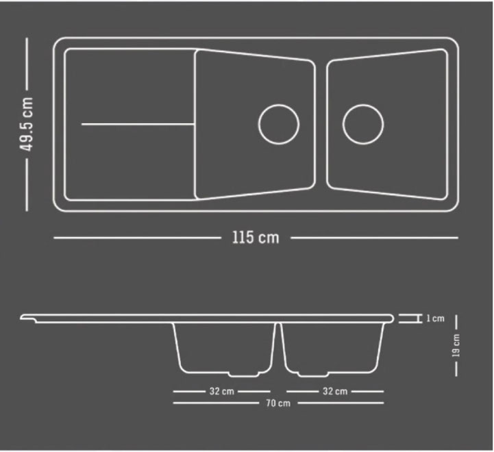 - ابعاد سینک: 115 در 49.5 سانتی متر